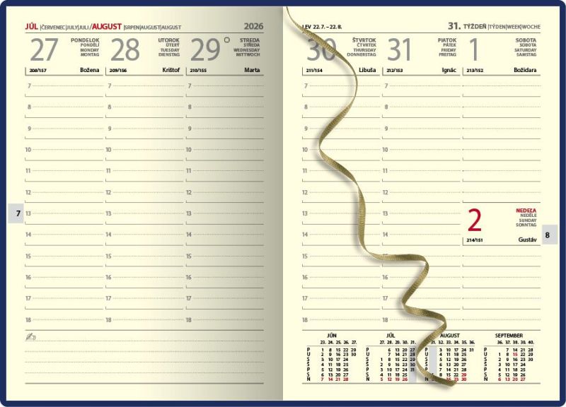 Konzervatívny pracovný A5 týždenný diár s výraznou striebornou razbou roka, určený ako pre dámy tak aj pre pánov na každý deň s prehľadnou grafikou.