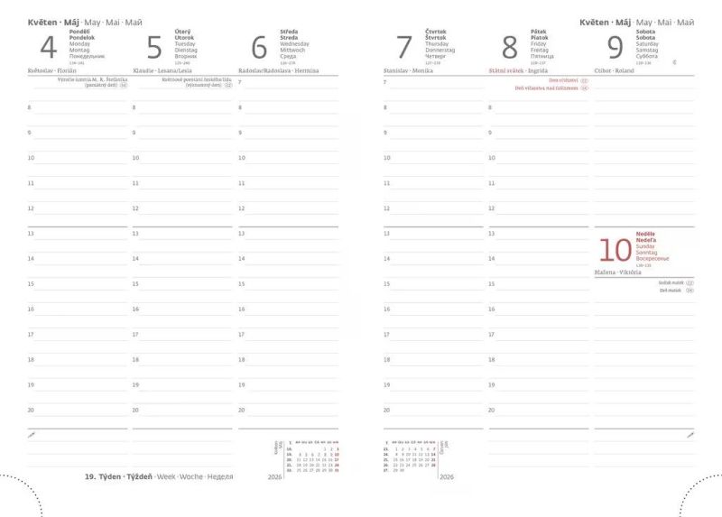 Formát: 143 x 205 mm / Rozsah: 128 strán / Kalendárium: týždenné + pútko na pero + možnosť dokúpiť si náhradnú náplň