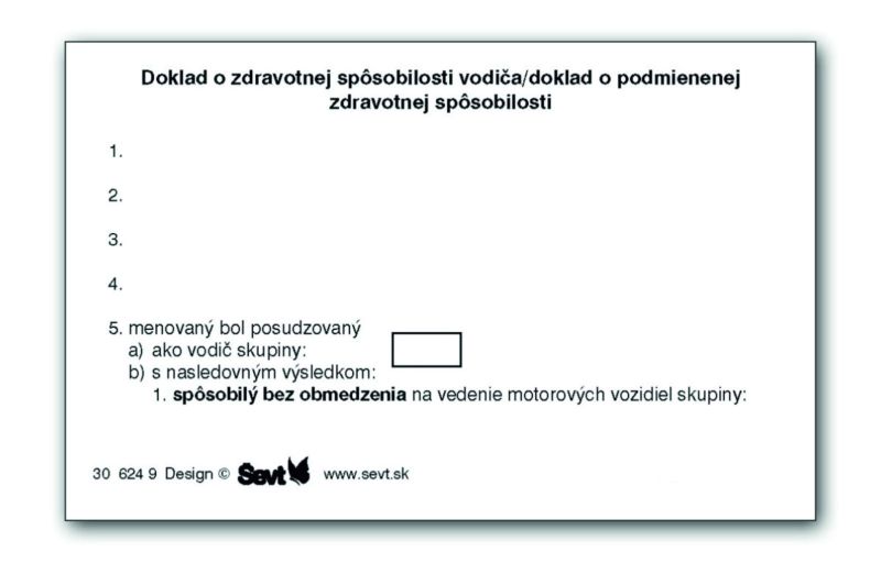 Doklad o zdravotnej spôsobilosti vodiča A7 Kód produktu: 11828