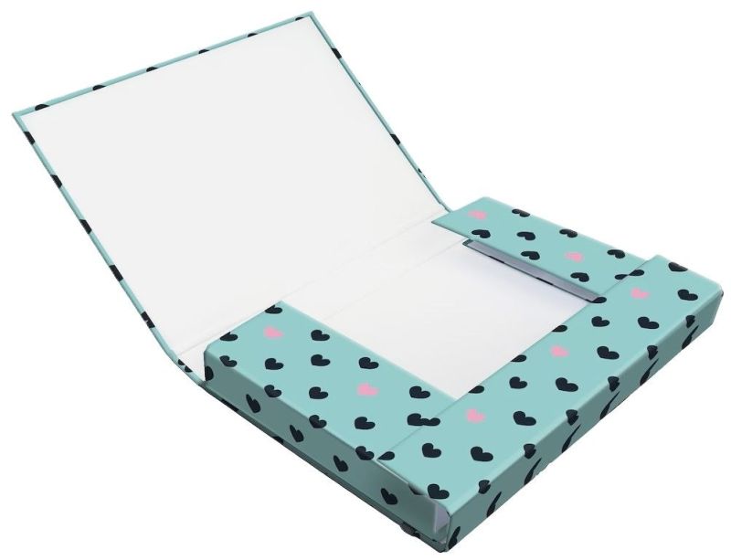 Laminované boxy na zošity sú vybavené vnútornými chlopňami, vďaka ktorým zošity nevypadnú a pevné gumičky ich udržia zatvorené. Dosky sú vo formáte A4 aby všetky zošity a školské dokumenty zostali pekne rovné. Vďaka chlopniam sú dosky ľahko rozšíriteľné aj na väčší počet zošitov.