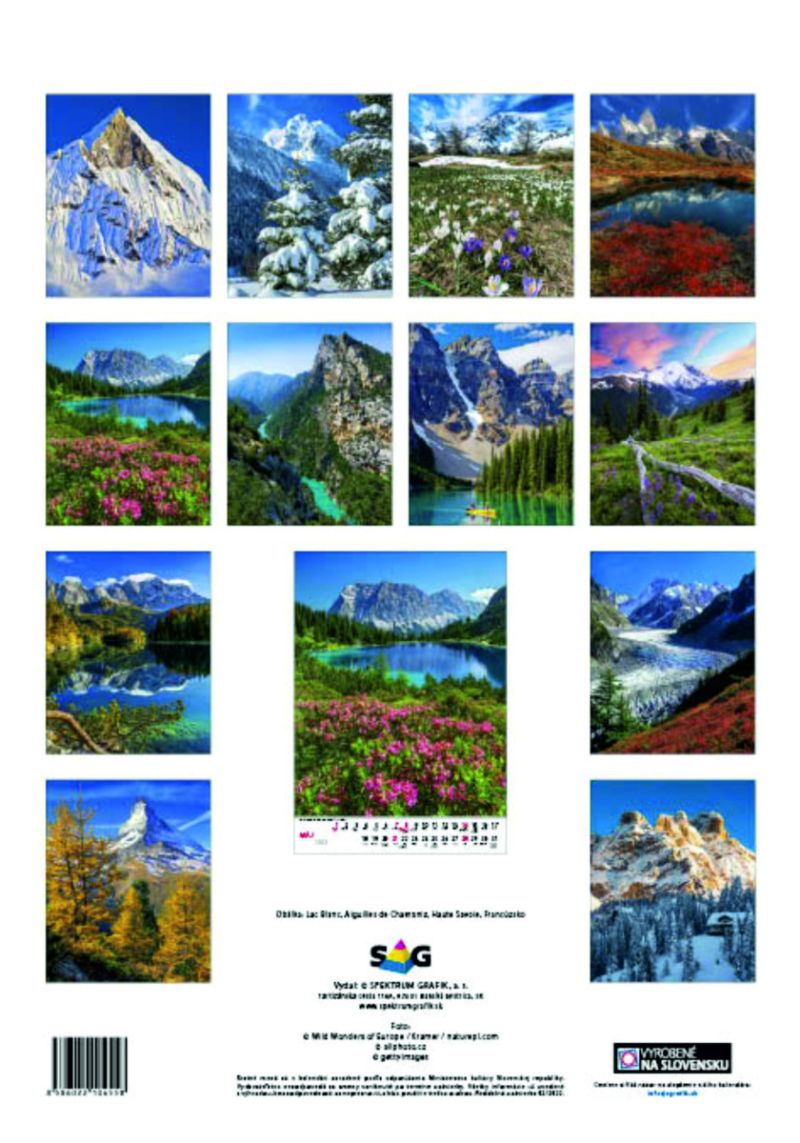 Kalendár Krásy hôr vás každý mesiac zavedie do dychberúcich scenérií horského sveta – od zasnežených štítov a zelených alpských lúk až po tajomné ranné hmly a zlaté západy slnka. Tieto pôsobivé fotografie zachytávajú majestátnosť prírody a prinášajú do vašich dní pokoj, inšpiráciu a úctu k divočine. Ideálny pre milovníkov turistiky, fotografie a ticha hôr.