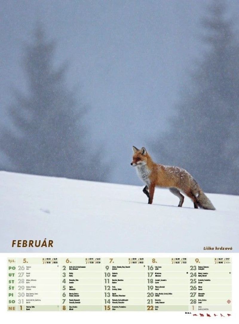 Mesačný kalendár, ktorý očarí každého milovníka prírody. Fascinujúce zábery voľne žijúcich zvierat s podrobnými informáciami o dobe lovu, fázami Mesiaca, východmi a západmi Slnka. Obsahuje slovenské a české mená a štátne sviatky.