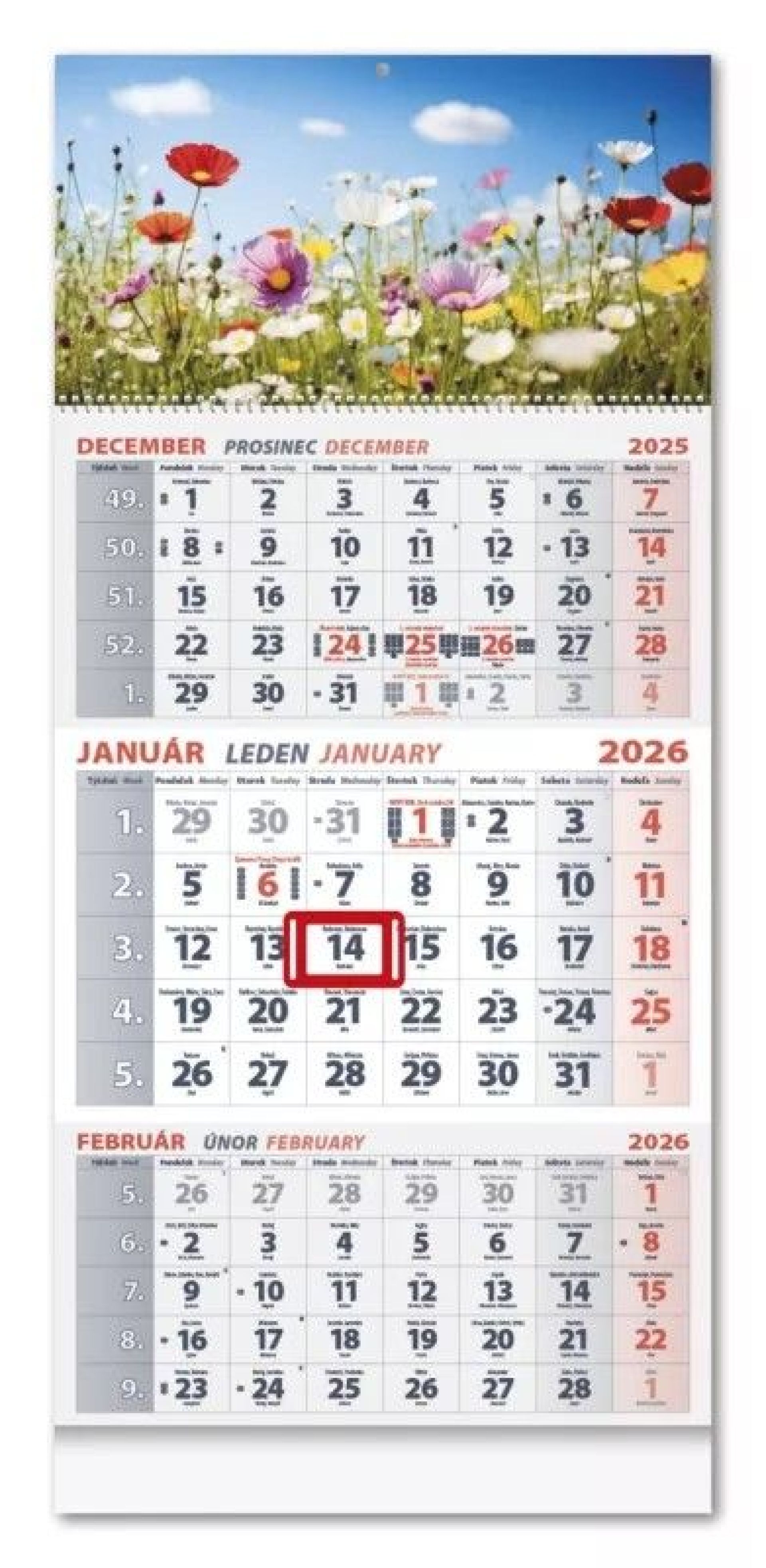 Prehľadný 1-ŠPIRÁLOVÝ trojmesačný nástenný kalendár je veľmi populárny a žiadaný.