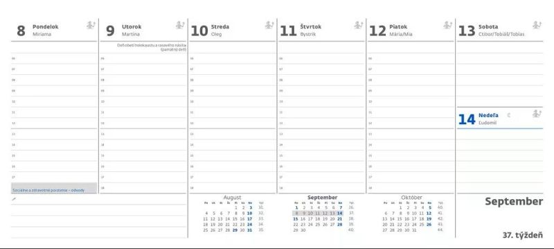 - slovenské týždňové stĺpcové kalendárium