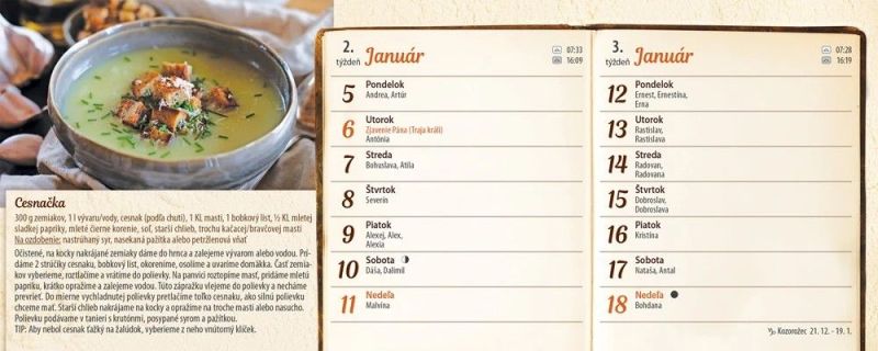 Kto robí najlepšie pečené buchty? No predsa stará mama. Stolový dvojtýždňový kalendár prináša NAJ slané aj sladké recepty našich starých mám. Okrem receptov kalendár ponúka slovenské a české mená, štátne sviatky susediacich krajín EÚ, školské prázdniny a východy a západy Slnka.
