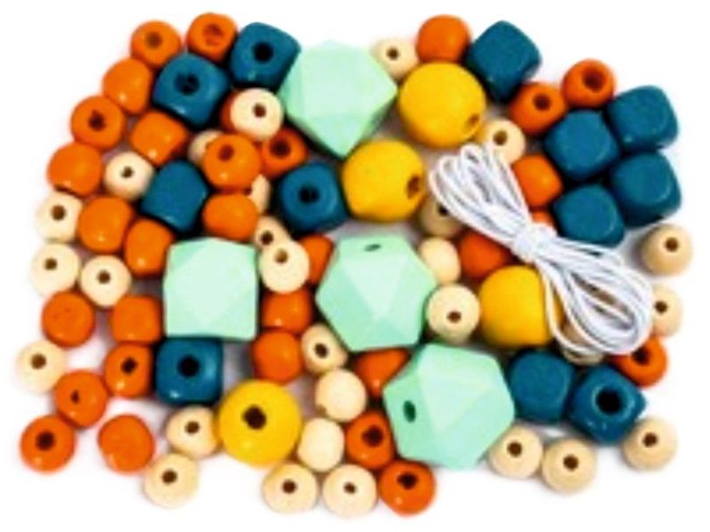 Drevené koráliky rôznych tvarov sú skvelým cvičením jemnej motoriky. Z korálok zároveň vytvoríte množstvo kreatívnych šperkov.
