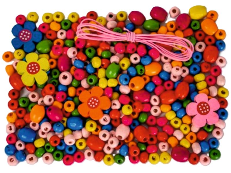 - drevené korálky v rôznych tvaroch a farbách