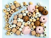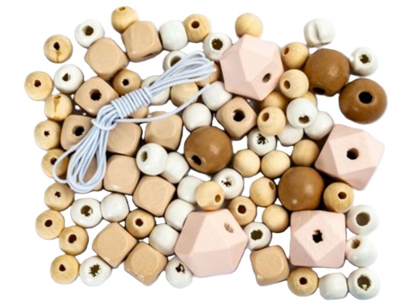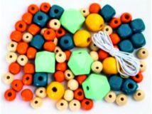 Drevené koráliky rôznych tvarov sú skvelým cvičením jemnej motoriky. Z korálok zároveň vytvoríte množstvo kreatívnych šperkov.