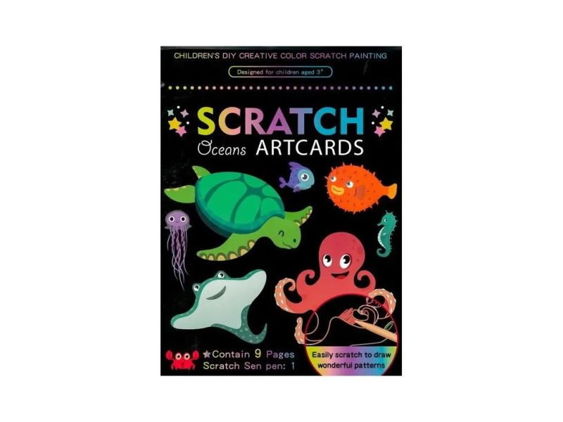 Pomocou škrabacieho pera, ktoré je súčasťou balenia, môžu deti odkrývať farebné vzory a vytvárať tak originálne umelecké dielka.