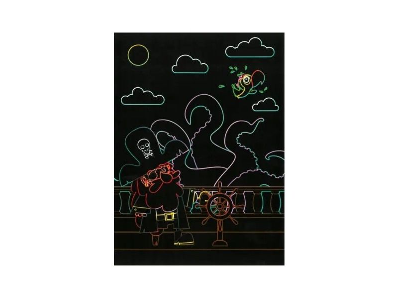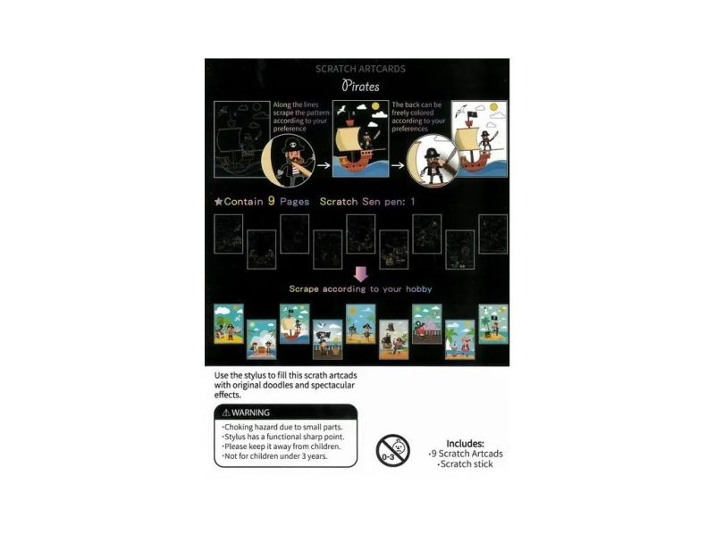 - obsah: 9 škrabacích obrázkov s motívom pirátov