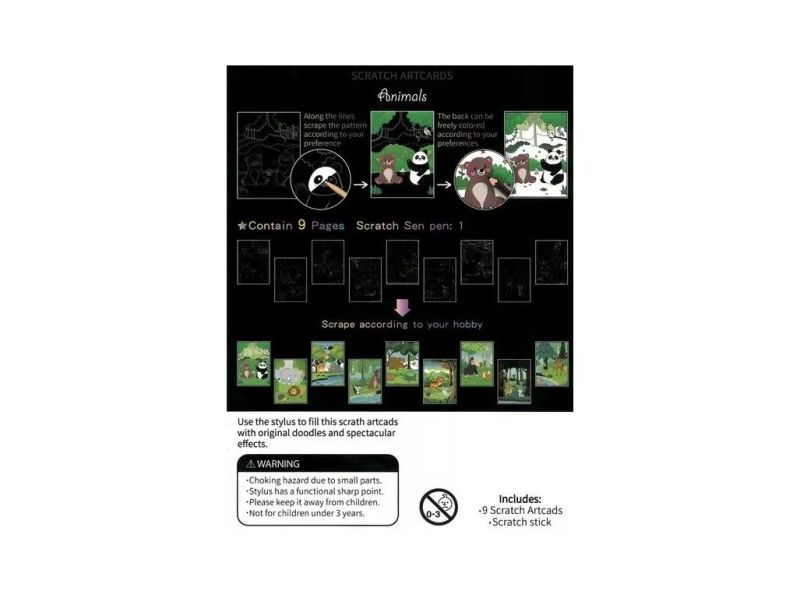 Pomocou škrabacieho pera, ktoré je súčasťou balenia, môžu deti odkrývať farebné vzory a vytvárať tak originálne umelecké dielka.