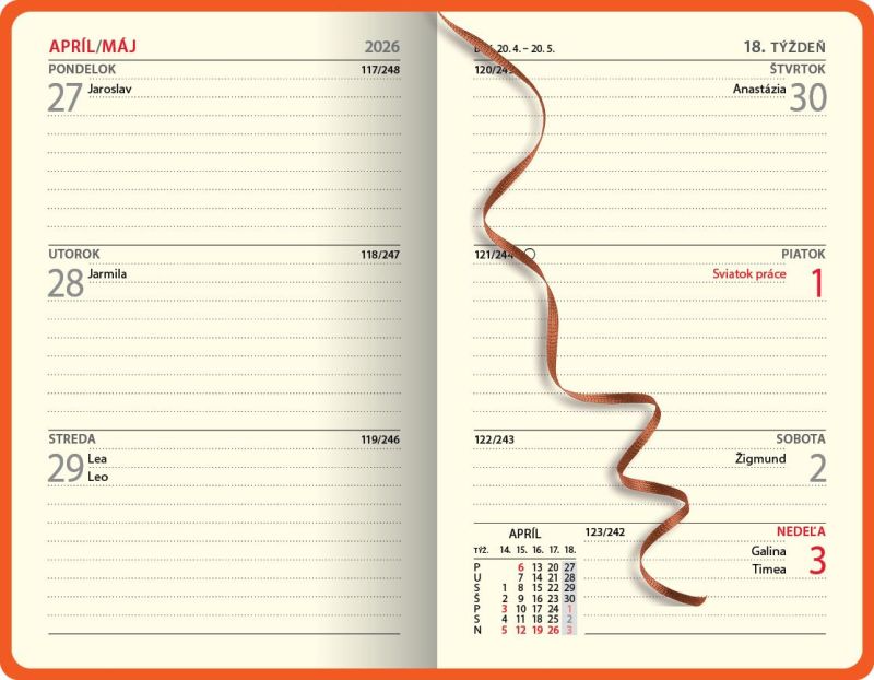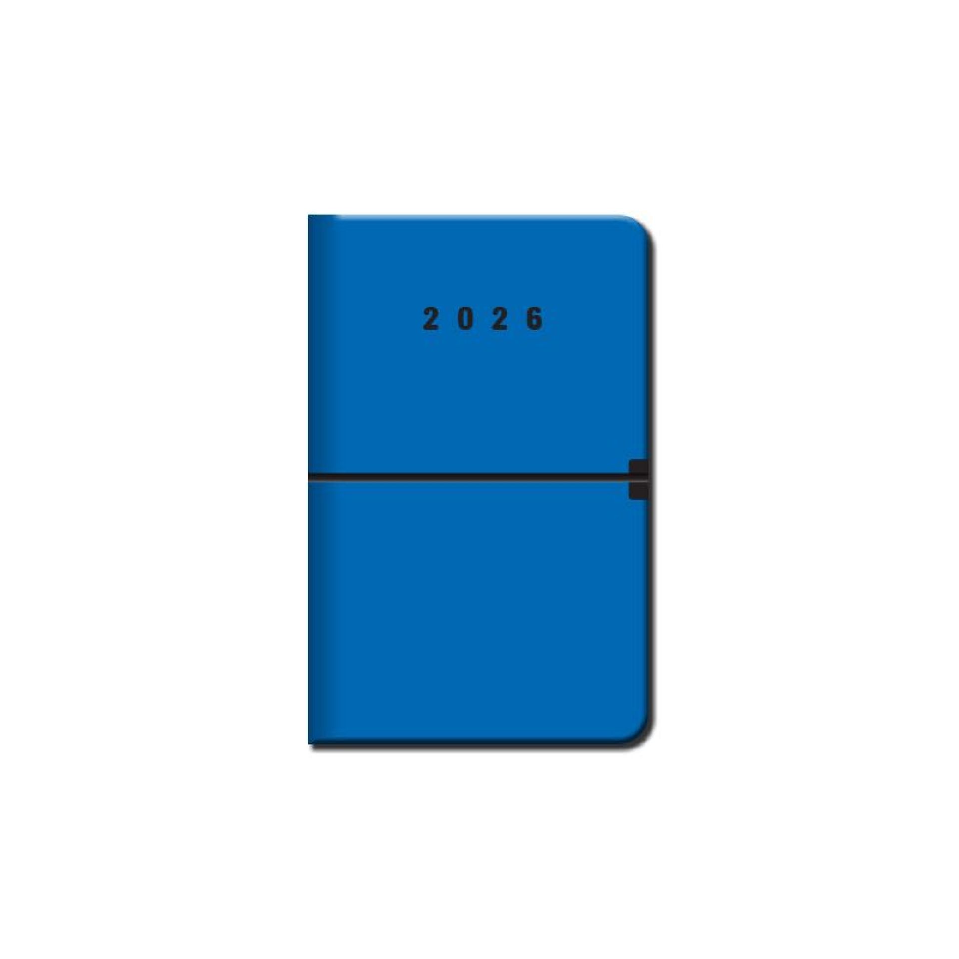 Štýlový týždenný mini diár v modrej farbe s prehľadným kalendáriom na celý týždeň. Diár má praktickú flexi väzbu. Stredom diára je gumička prichytená o kovový úchyt. Obsahuje slovenské kalendárium.