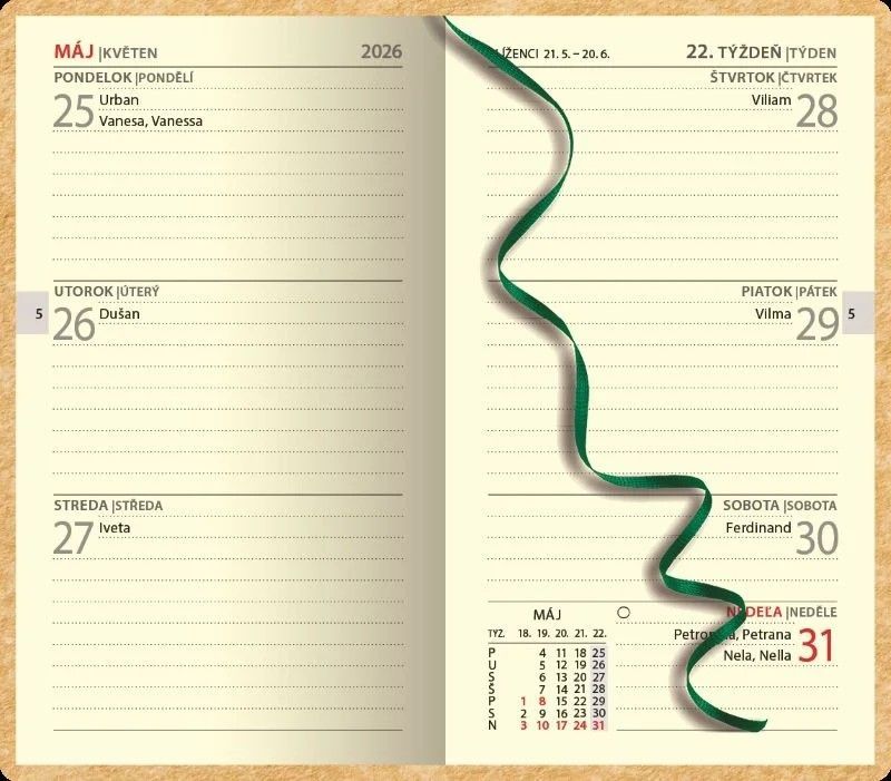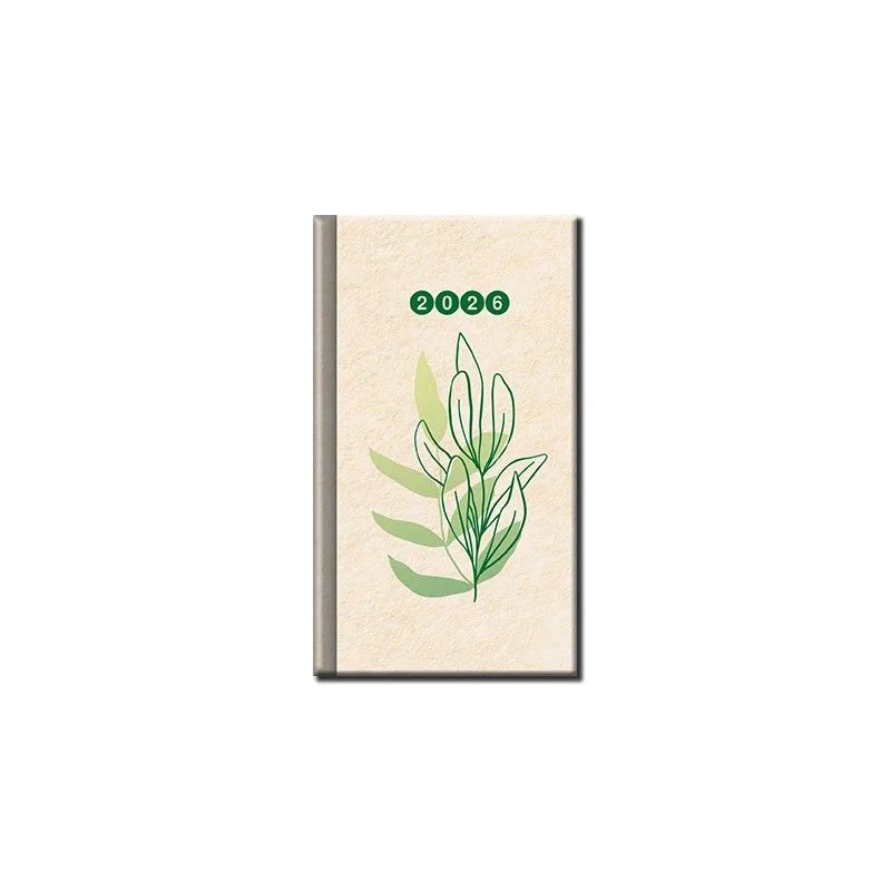 Certifikovaný týždenný mini diár s prehľadným slovenským kalendáriom na každý týždeň. Na obal je použitý vysokokvalitný papier NAPURA s prírodným dizajnom, 100 % recyklovateľný, s lacetkou. Vďaka vysokej kvalite vlákien je možná: termorazba, razba fóliou alebo ÚV tlač.