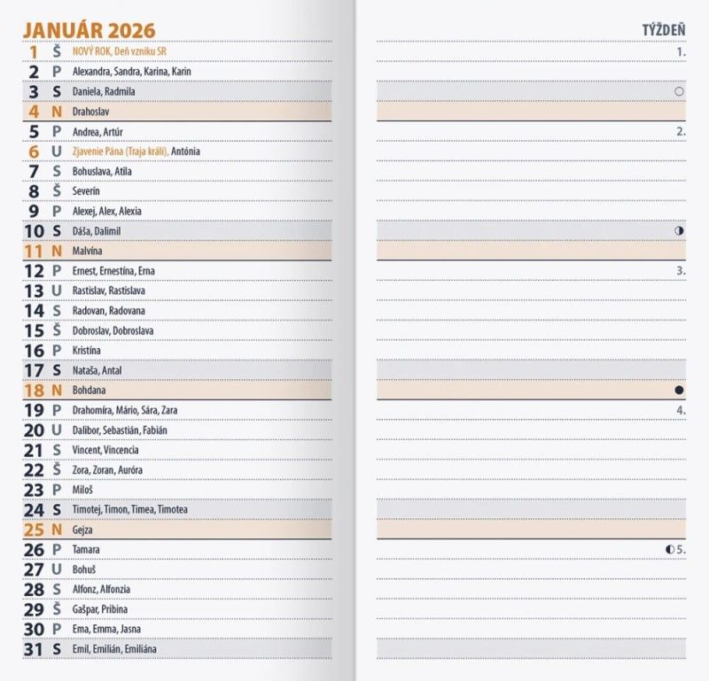 + obsahuje slovenské mená, štátne sviatky a fázy Mesiaca