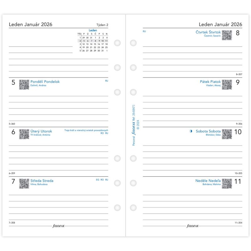 Náhradné listy do diára A6 Filofax týždenné Kód produktu: 23921