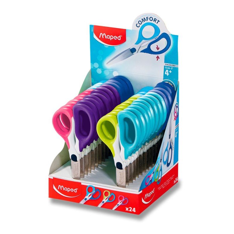 Nožnice Maped Sensoft Asymmetrical pre pravákov, alebo ľavákov s prevrátenými čepeľami, veľkosť 13 cm. Nožnice majú asymetrické, ergonomické a pružné rukoväte, vďaka ktorým je strihanie pohodlné.
