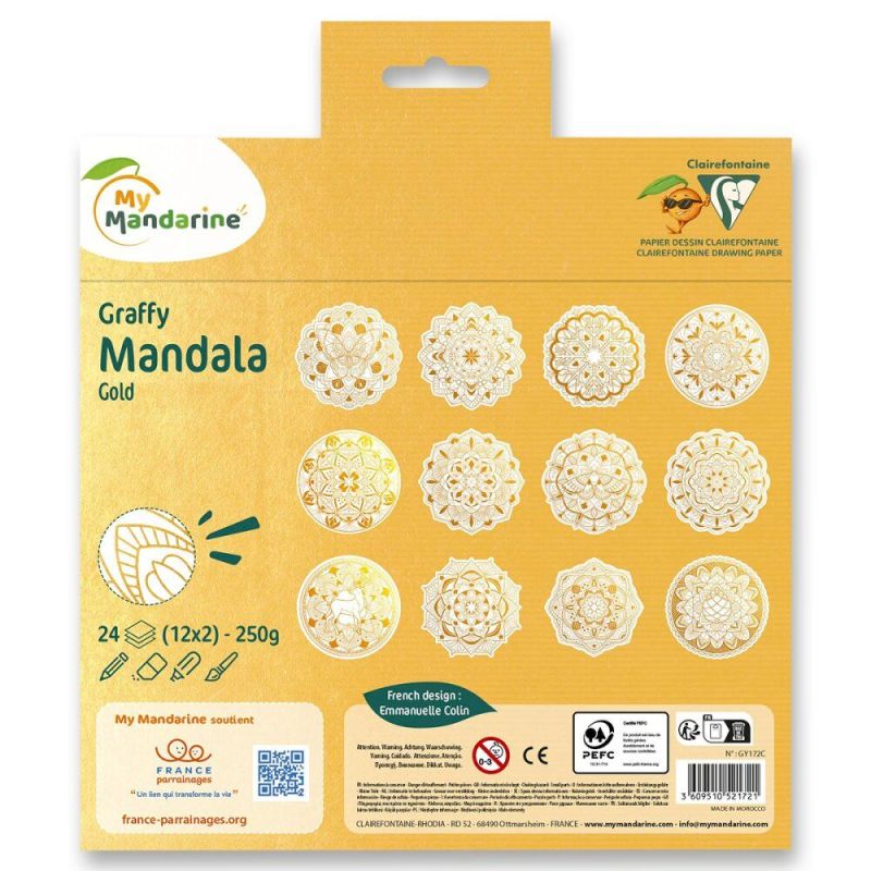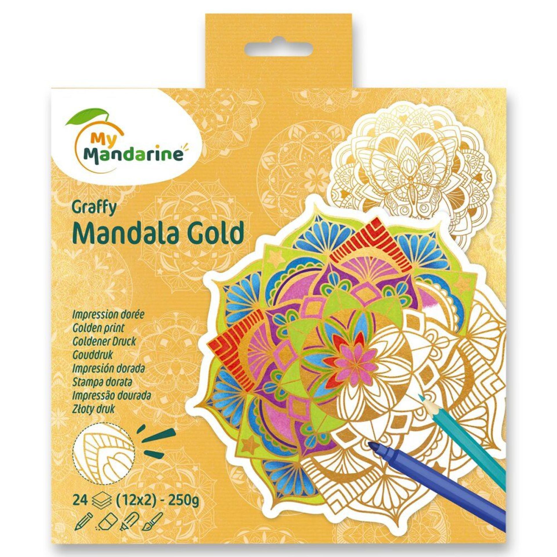 Omaľovánky Avenue Mandarine Graffy Mandala Gold s predkreslenými motívmi zlatých mandál.