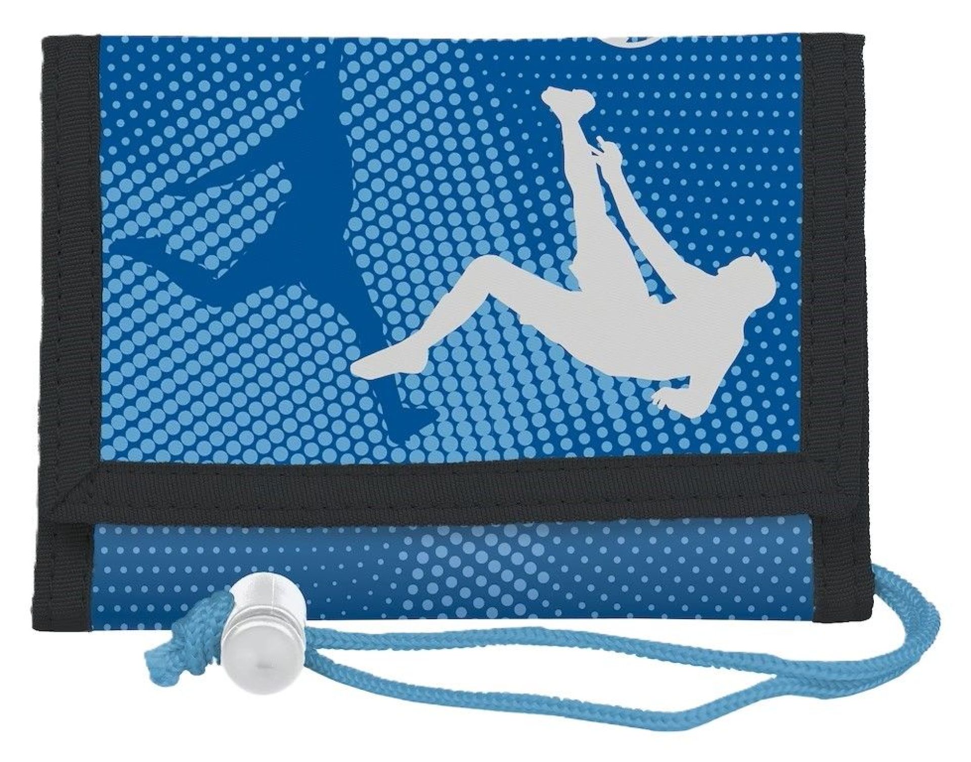 Peňaženka sa ľahko uzavrie suchým zipsom a pohodlne sa nosí na krku vďaka pevnej šnúrke.