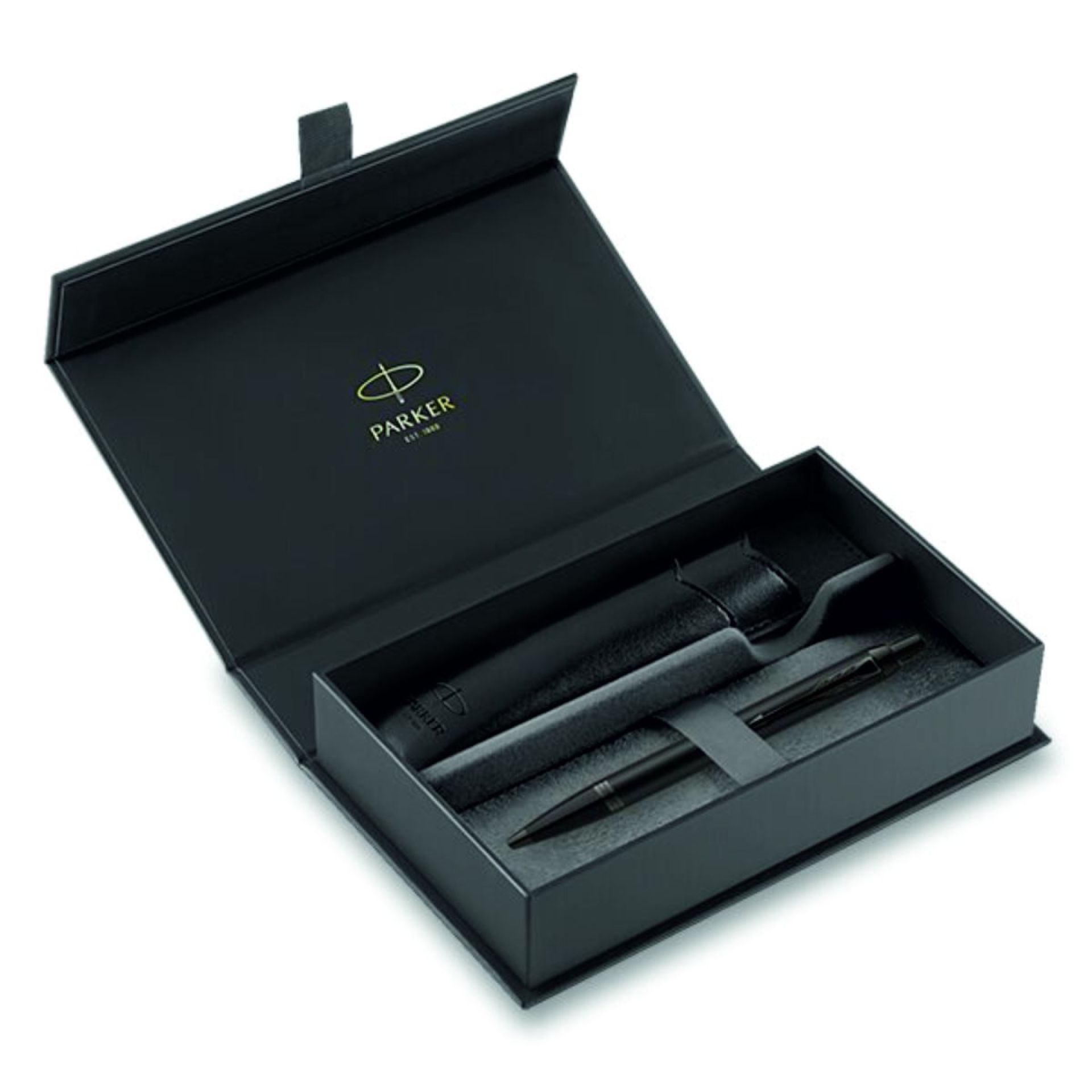 Darčeková kazeta guľôčkového pera Parker IM Achromatic Black BT s púzdrom.