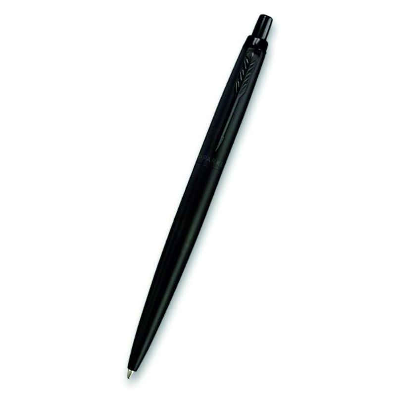 Darčeková kazeta guľôčkového pera Parker Jotter XL Monochrome Black BT s púzdrom. Pero má čierne lakované telo a čierna lakovaná vrchná časť je z nerez ocele. V kombinácii s doplnkami potiahnutými pomocou techniky PVD odolnou matne čiernou vrstvou.
