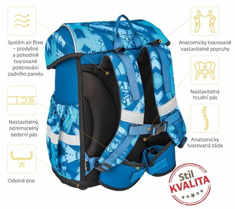 - kvalitná, ergonomická a veľmi odolná školská aktovka pre 1.-3. ročník