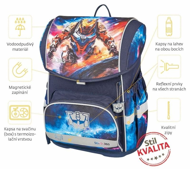 BEZPEČNOSŤ – bezpečnostné prvky sú veľmi dôležité, preto je aktovka vybavená zo všetkých strán reflexnými prvkami, ktoré zaručia lepšiu viditeľnosť a bezpečnosť dieťaťa v tme