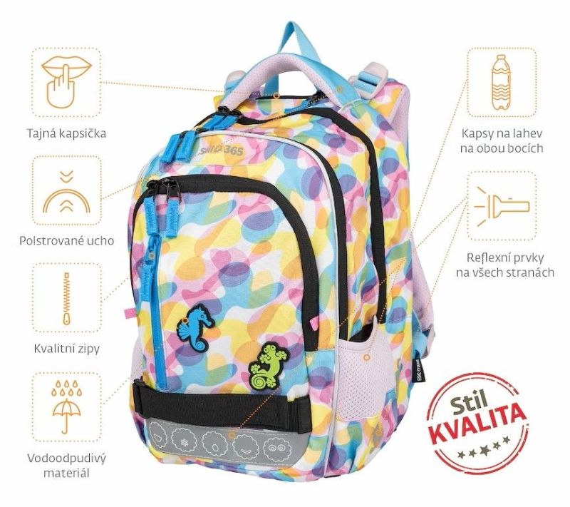 - kvalitný, ergonomicky tvarovaný, odľahčený školský batoh je vybavený reflexnými prvkami a anatomicky tvarovaným chrbtom s pevnou konštrukciou