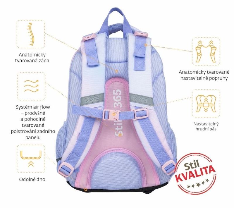 - kvalitný, veľmi ľahký, ergonomicky tvarovaný a odľahčený školský batoh je vybavený reflexnými prvkami a anatomicky tvarovaným chrbtom s pevnou konštrukciou