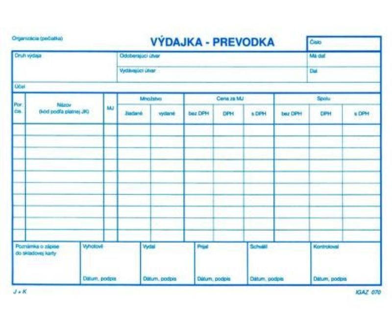 Výdajka-prevodka A5 samoprepis Kód produktu: 13230