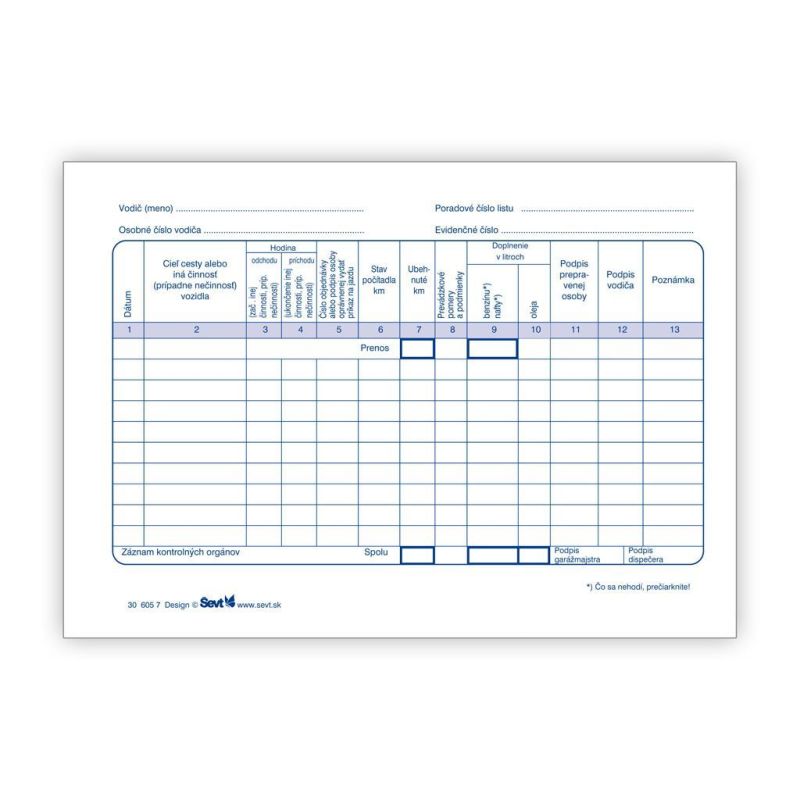 Záznam o prevádzke vozidla osobnej dopravy samoprepis Kód produktu: 11405